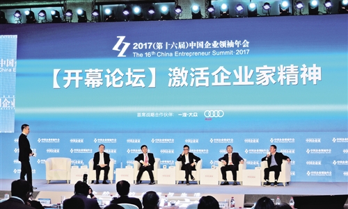图为“2017(第十六届)中国企业领袖年会”开幕主题论坛现场。 记者 崔国强摄