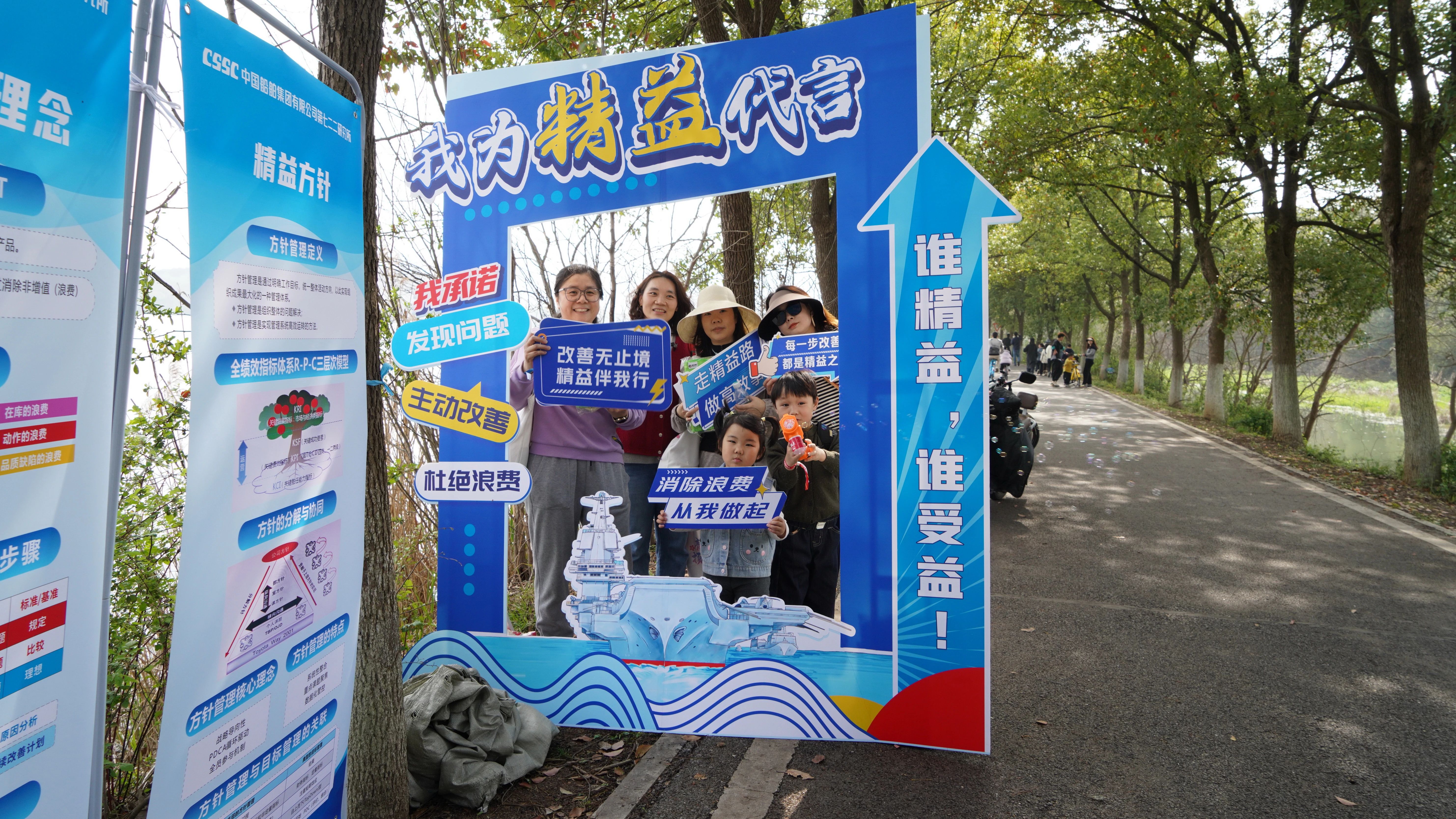 与去年相比,今年的沿途主题文化打卡点更显“热闹”,除精益、安全、质量、法治和企业文化外,还新增了与智能制造、计量检测等领域的知识打卡点。八大主题文化打卡点错落分布,将原本近10公里的路程自然切分成一个个充满期待的小段落。每到一处,大家或阅读、或讨论、或答题,一路行走,一路浸润,在潜移默化中接受文化熏陶。